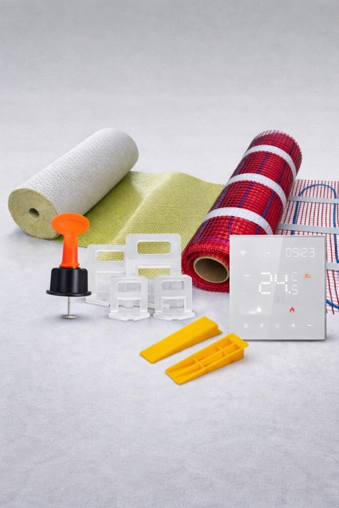 Essential trims, adhesives, and fixings for a perfect tile installation finish.